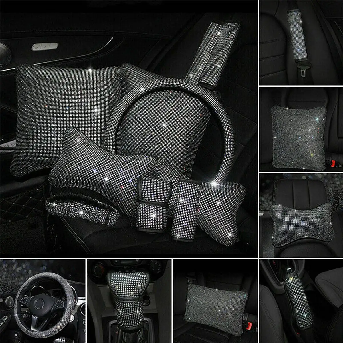 Universal Car Sparkle Bling Rhinestone Interior Steering Wheel Cover Center Console Cushion Headrest Pillows Auto Accessory Set Automobiles Seat Covers Aliexpress